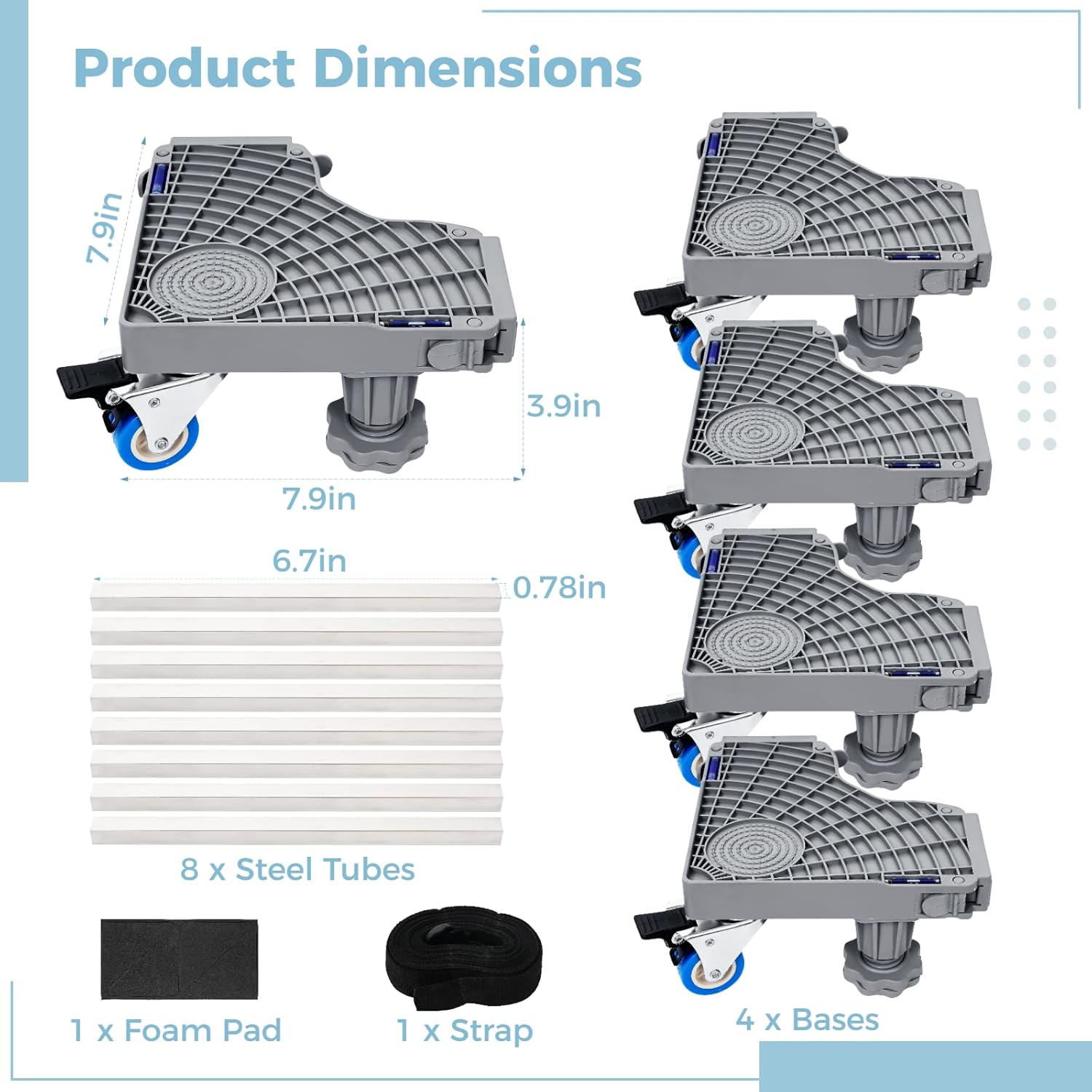 Elevate your appliances and extend their service life with our Heavy Duty Washing Machine Base Stand. This versatile stand is designed to fit various household appliances, including washing machines, dryers, refrigerators, and more. With adjustable height and lockable wheels, it offers mobility, stability, and protection for your valuable equipment. Get the most out of your appliances with this reliable and easy-to-install stand.